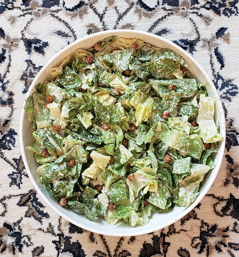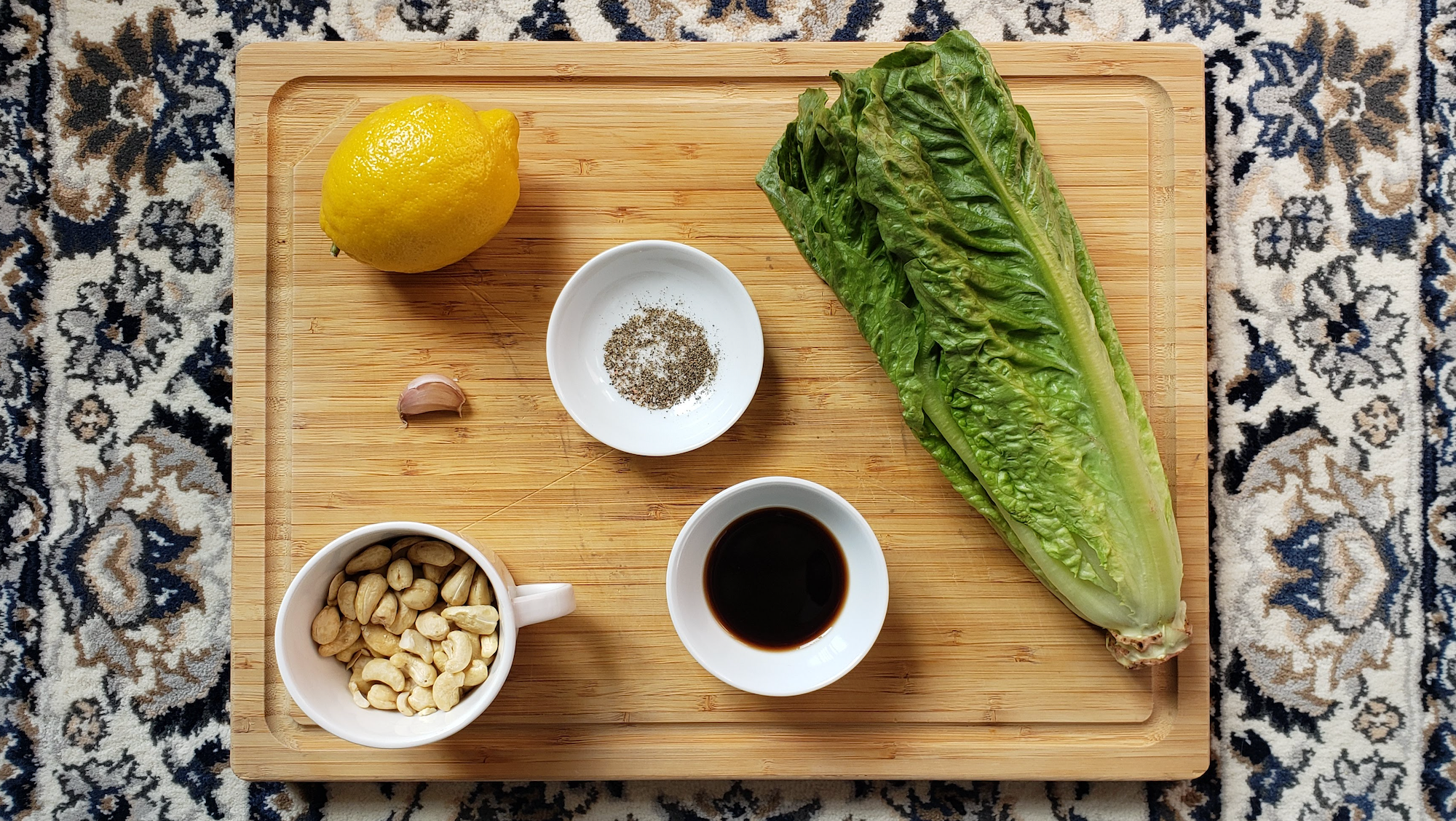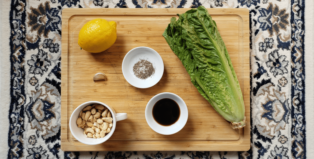 I am not a big fan of measuring out the ingredients, I go off of how I feel that day. Some days I want more lemon and others more garlic. Some days I opt to leave out the balsamic vinegar all together to have a more traditional caeser dressing vibe. Play around with the ratios to create your own perfect version! Let me know what you come up with 🙂