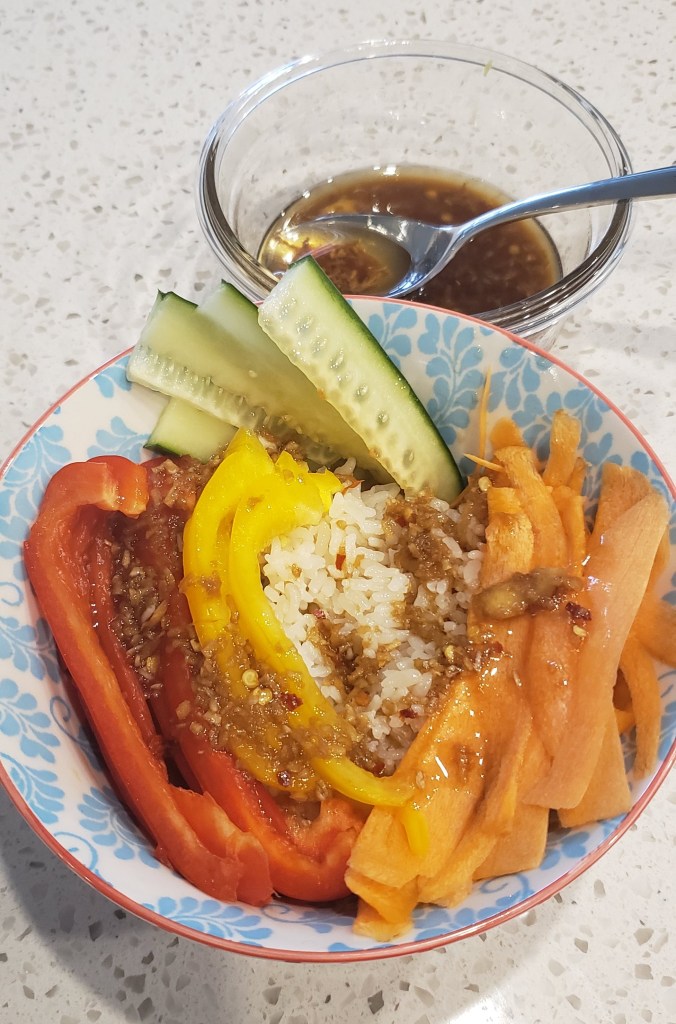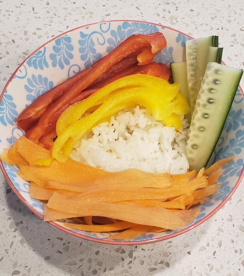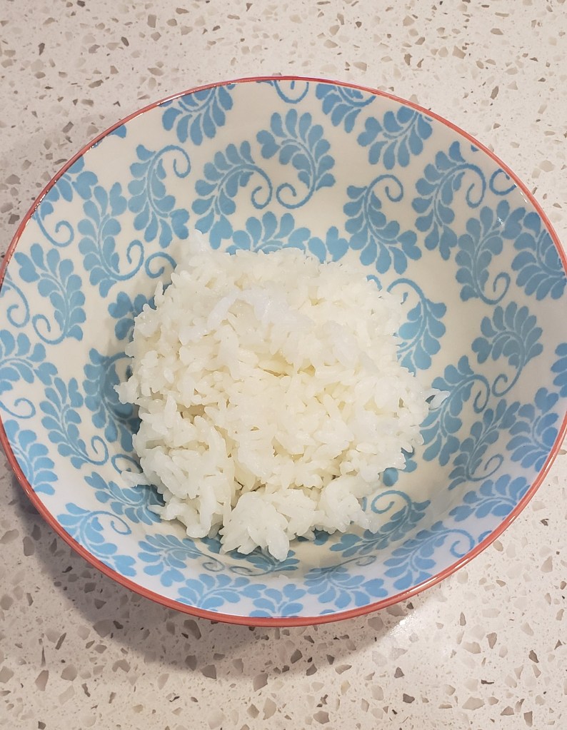 - Cook 1 cup rice according to package directions (I use sushi rice by the brand Kokuho Rose, you can usually find it at Costco)