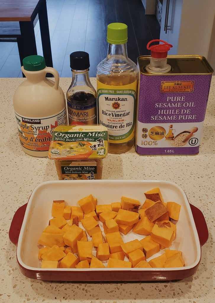 - Mix all the sauce ingredients by whisking (or using a spoon) to dissolve the miso paste