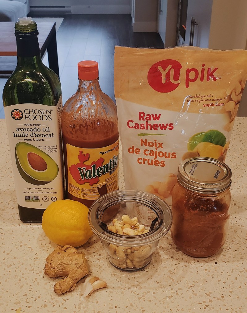 - Blend all ingredients in a blender and adjust water & cashew as needed